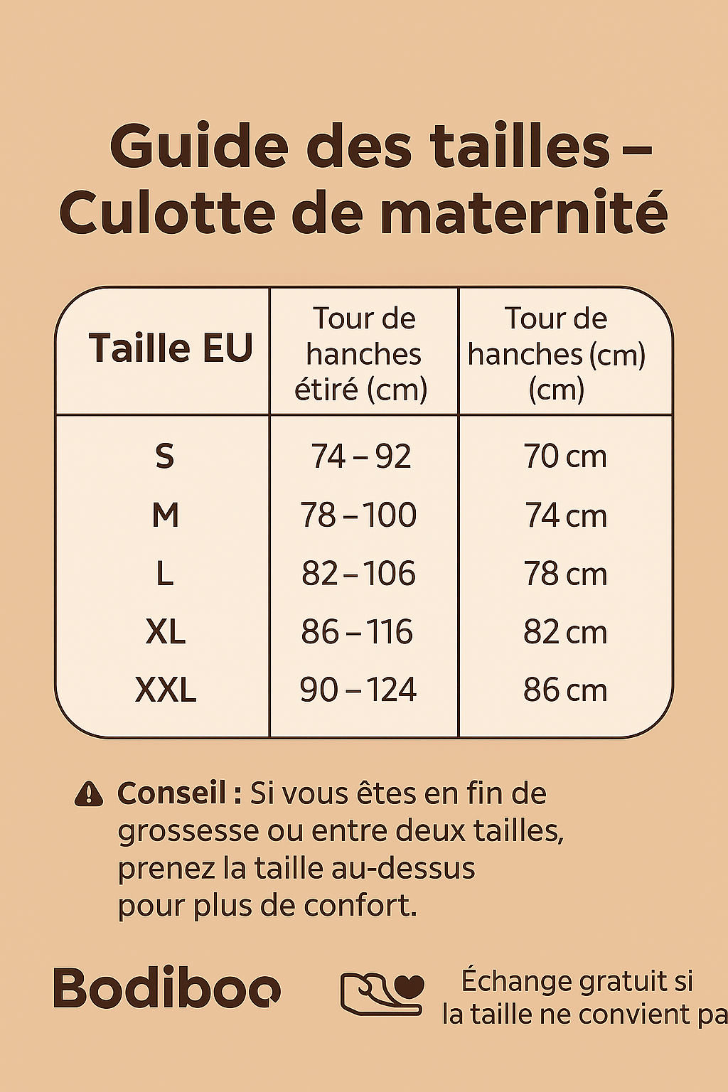 Le tissu extensible et la ceinture ajustable permettent à la culotte de suivre l’évolution de ton corps sans problème.